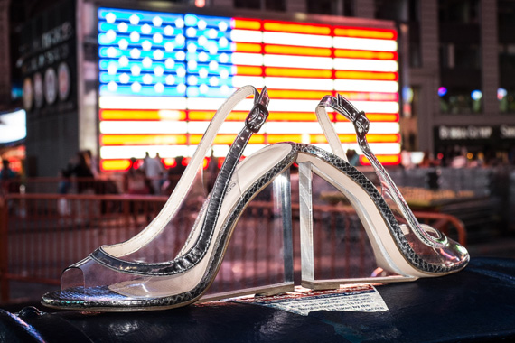 Materiais transparentes que sugerem pés descobertos ou suspensos, tonalidade nude que se confunde com a pele e toda inspirada no mood da Audrey Hepburn (A bonequinha de luxo!).